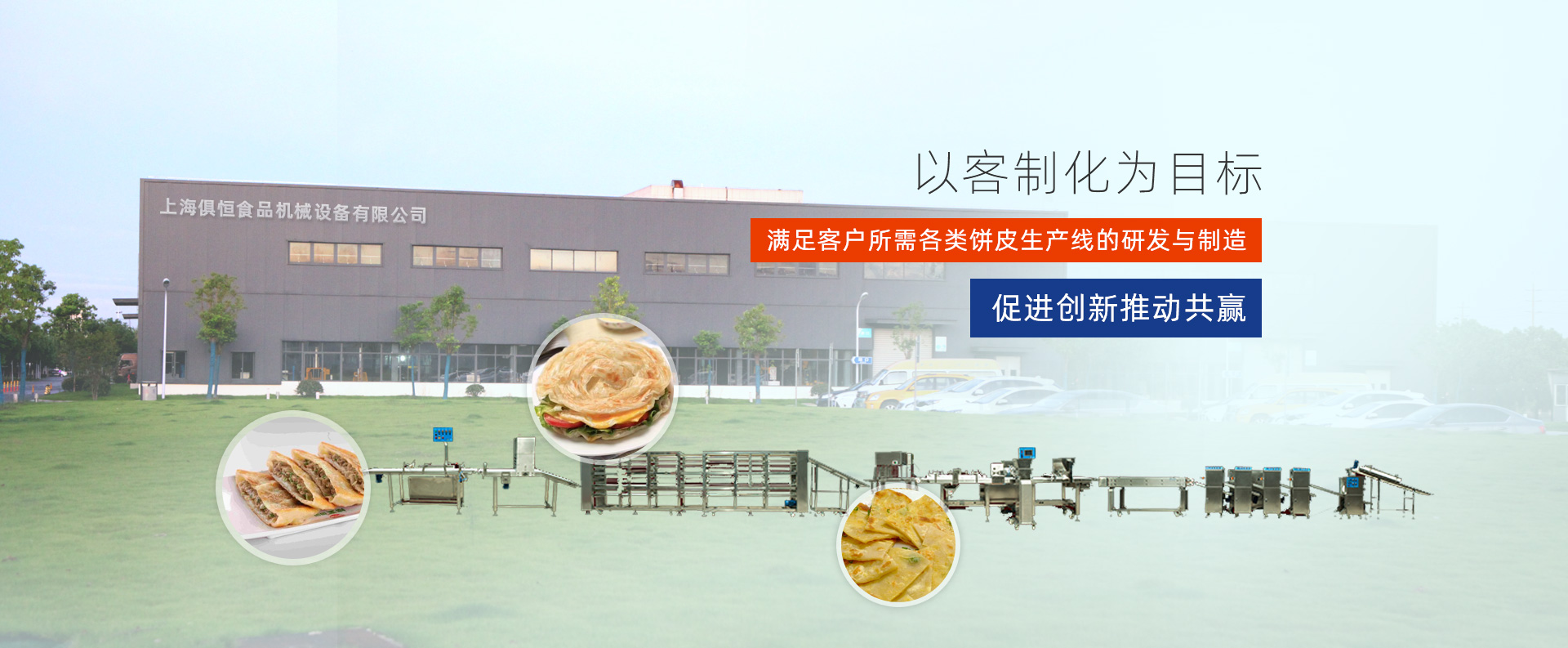 經長期的研發和改進,已經由起初的單一產品朝著多元化產品發展,可提供機械式全自動手抓餅生產線、全自動墨西哥餅皮生產線、全自動多層次酥皮生產線、以及全自動蛋撻、餡餅、肉夾饃、雞蛋灌餅、甜甜圈、披薩等生產線。以“客制化”為目標,滿足客戶所需各種餅皮類生產線的研發與制造,為客戶創造利潤,合作共贏。